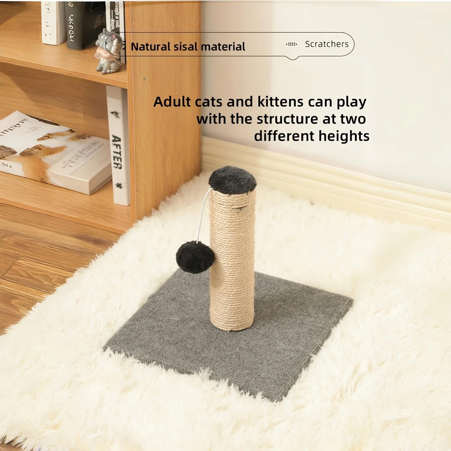 Natural sisal with toy ball cat scratching post - with sisal and velvet base, suitable for adult and kitten gray cat indoor toys