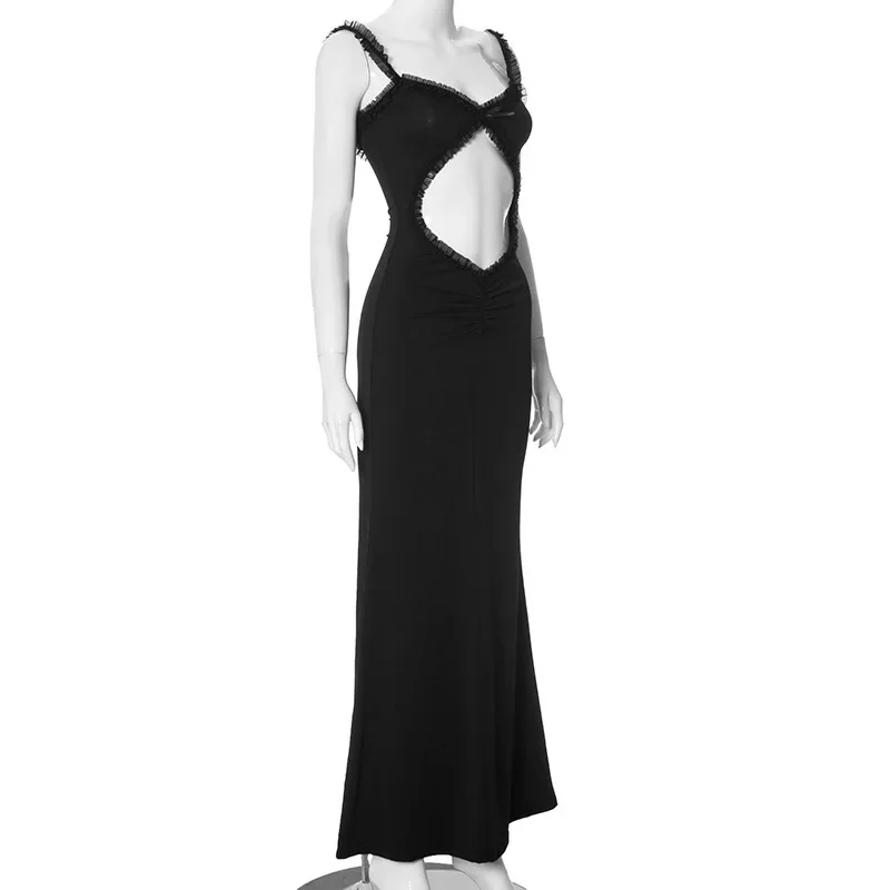 Backless Hollow Out Sexy Party Dress Women Spaghetti Strap 2024 Summer Dress Elegant Maxi Long Slim Bodycon Dresses