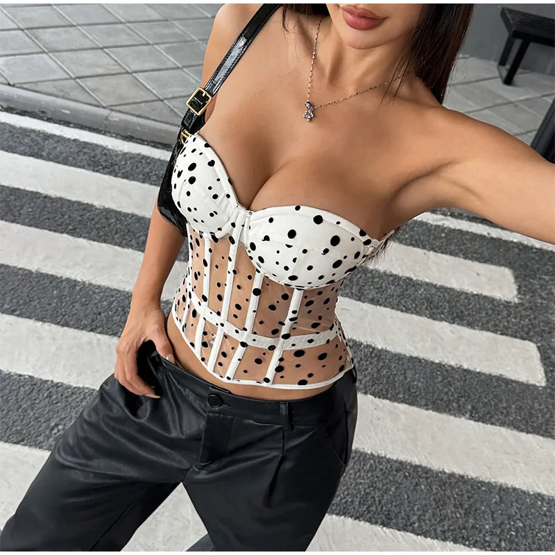Sexy Lace Hollow Out Vest Women Bandage Slim Waist Strapless See Through Party tank Top Summer Lady Chic Street Vests